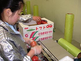 (画像はトマトの個包装をラッピングしています)