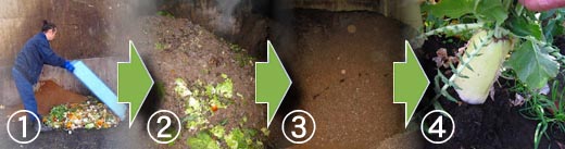 現在、下記工程にてつくられた堆肥を、横浜環境保全株式会社を通じて、